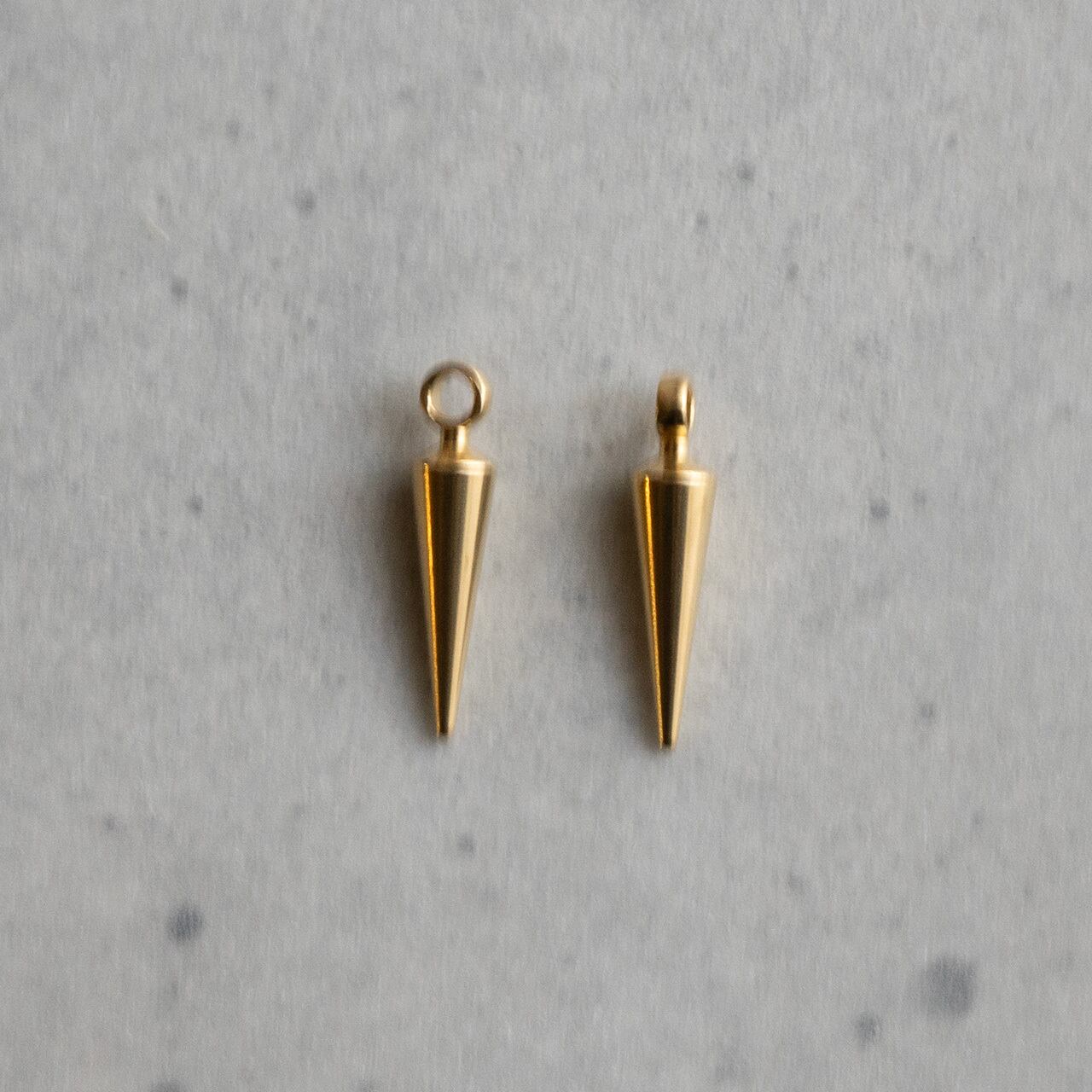 肩の部分が角張った、スタッズのようなチャームです。すっきりとした印象にしたい時にぴったりです。削り出しで作られているので重量感があります。