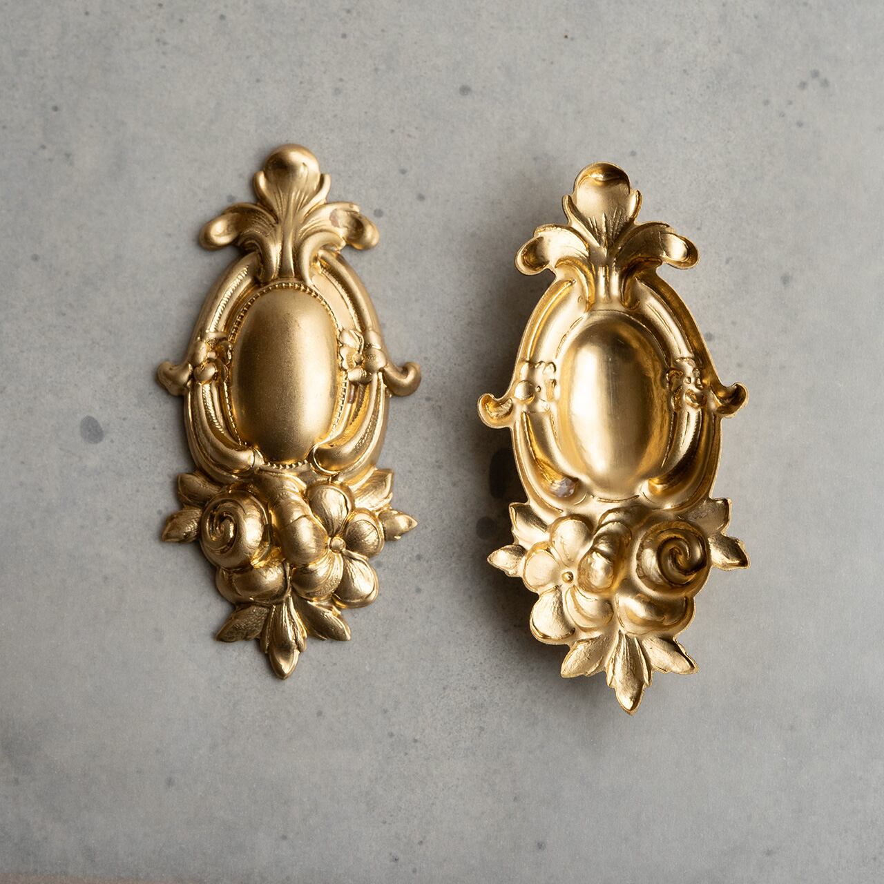 アール・ヌーヴォーデザインのローズのエレガントなプレートです。ふっくらツルッとしたところにアクセントになるような何かをつけたりして、ブローチやペンダントトップにしてみてはどうでしょうか。