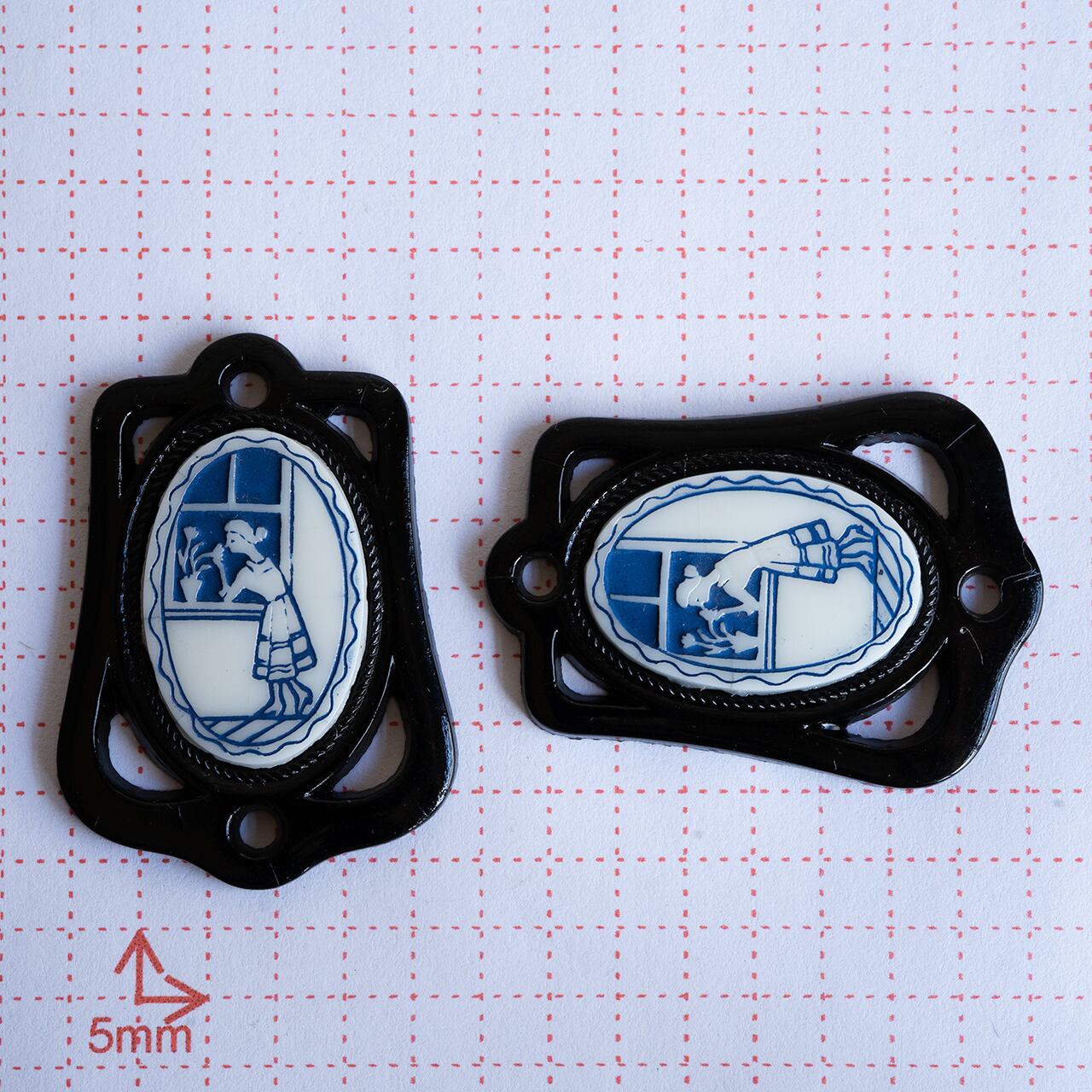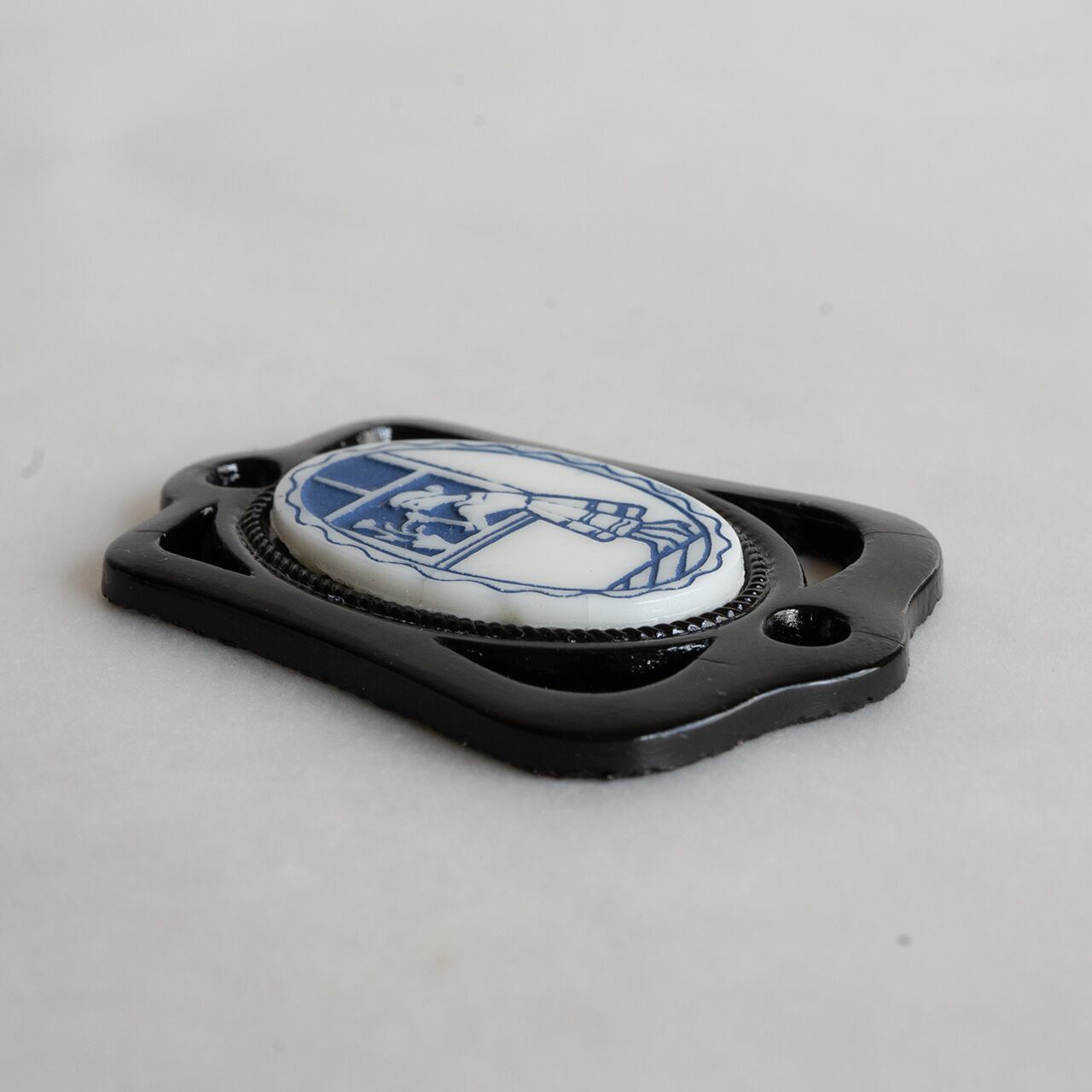 フランスで見つけました。恐らくフランス製だと思います。ガラスのユニークな黒の額縁のような枠に少女のシックで可愛らしい絵柄のカボションが載せられたペンダントトップです。こんな組み合わせなかなか出てこない発想、なかなか粋です。