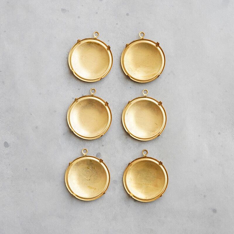 ラウンドセッティング18ミリ、真鍮製の石座、カン付き(6コ)