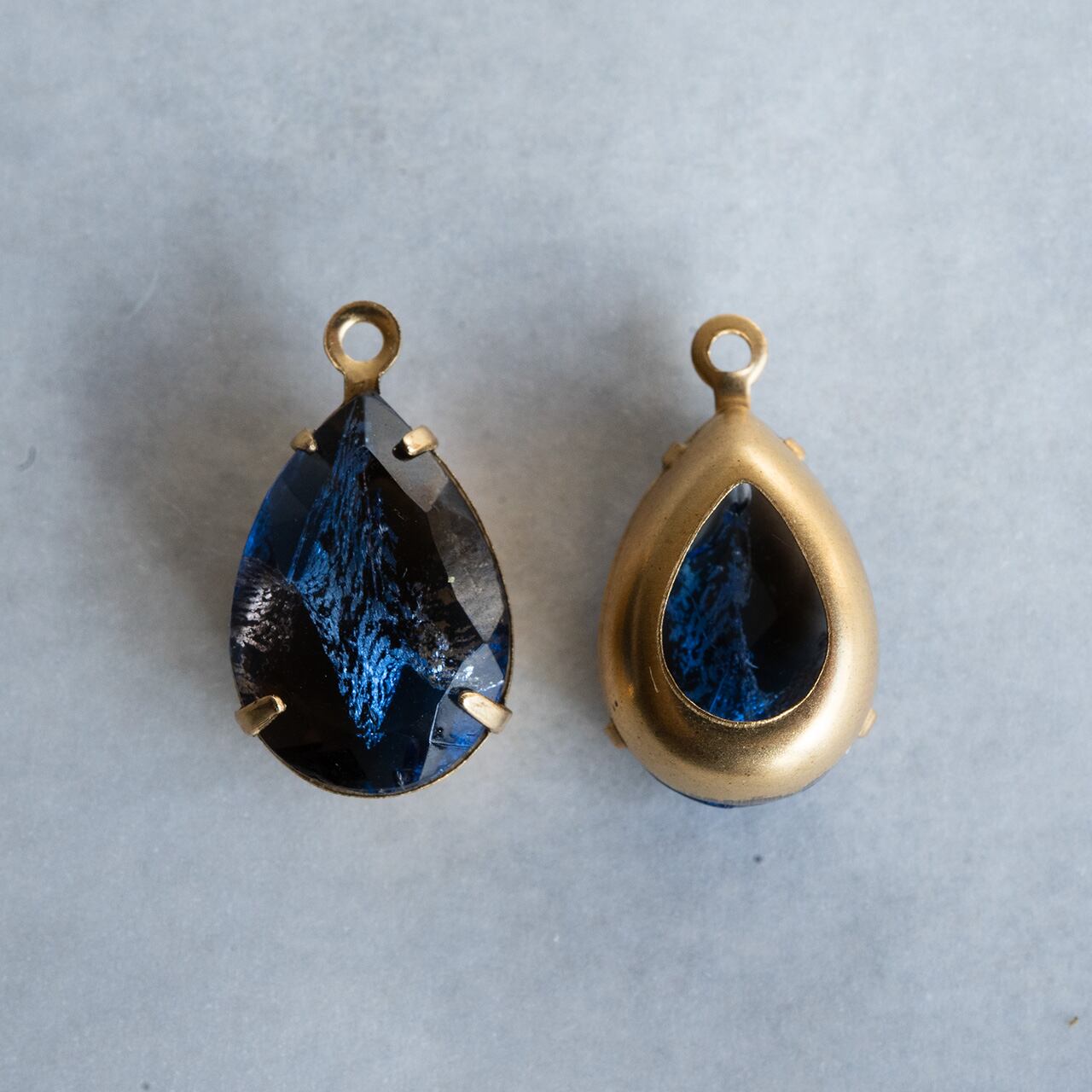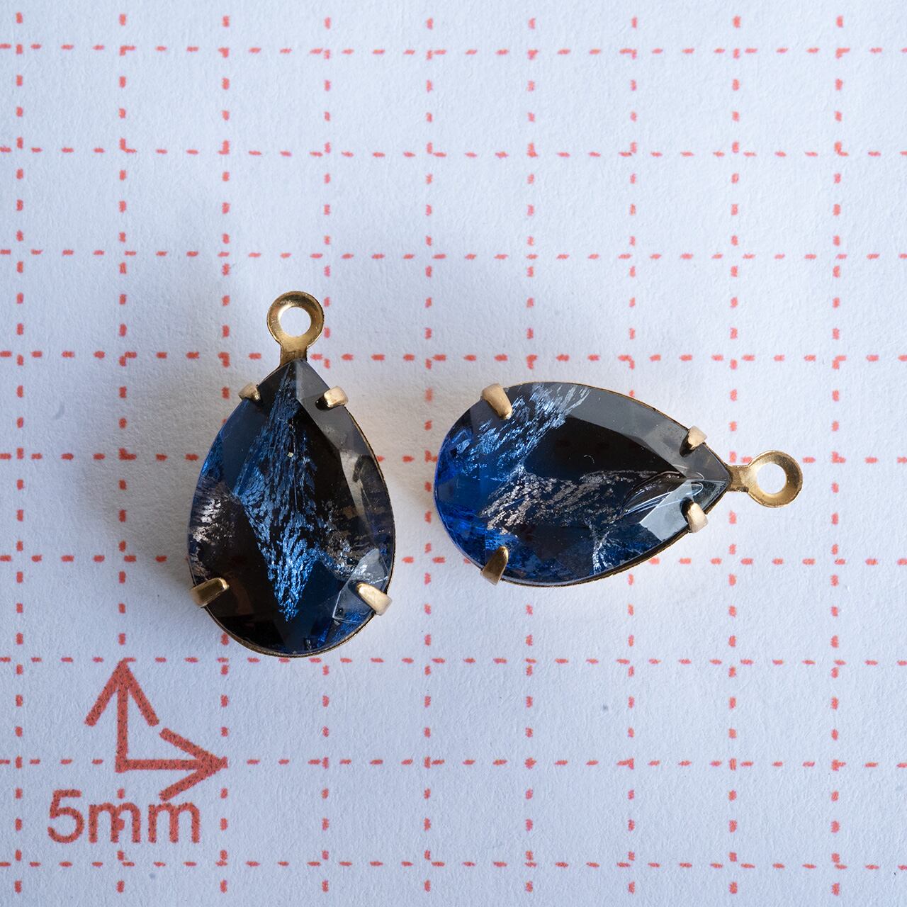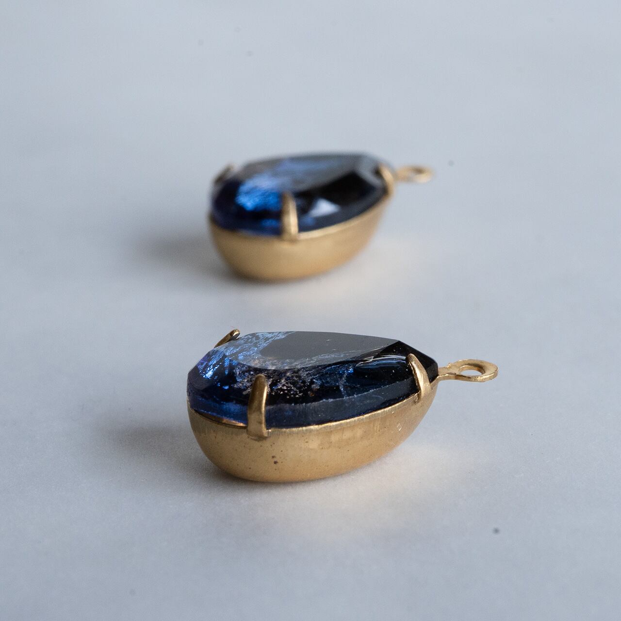 クリアなガラスにシルバーフォイルが入った美しいストーンです。クリアの色もひとつずつ異なっていてアンバーのようなブラウンが入っていたり、濃紺なもの、コバルトのような青のもの、それぞれにドイツの職人気質を感じます。