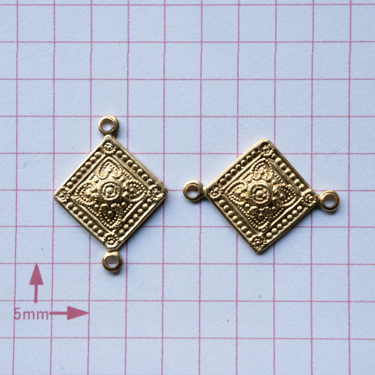 オリエンタルな雰囲気をまとった真鍮のコネクターです。ビーズばかりでつなげたブレスレットや、ネックレスに数枚こんなコネクターが入っているとちょっとした個性がでます。しっかりとした厚み、大粒なものにも併せやすい適度な存在感が良いです。