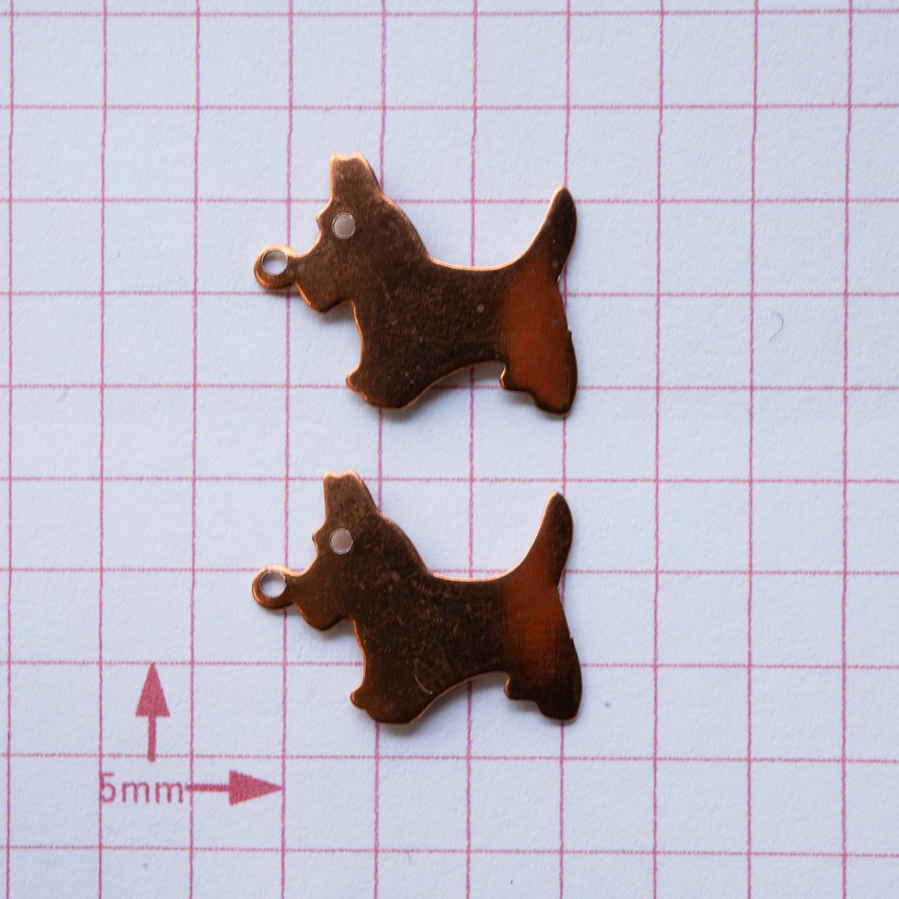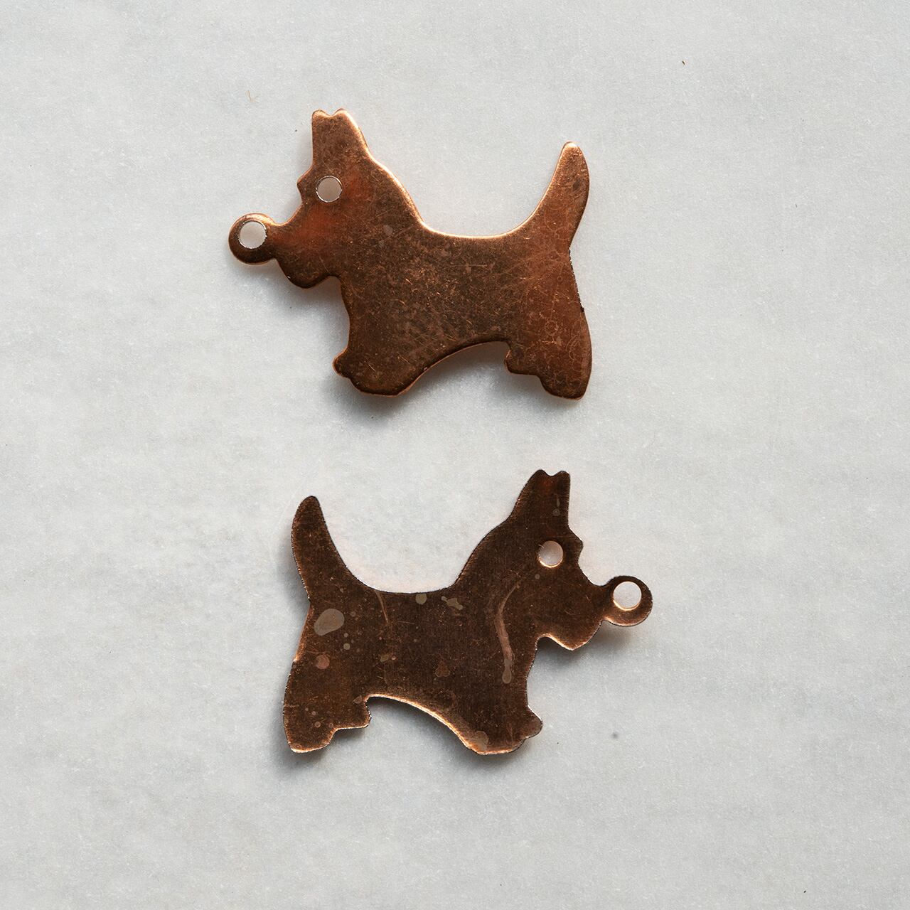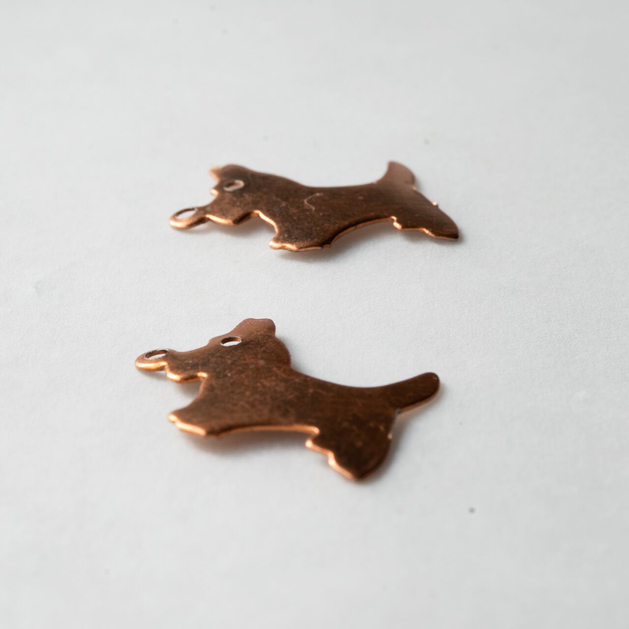 1960's 銅(真鍮)の小さな犬のチャーム(2コ)