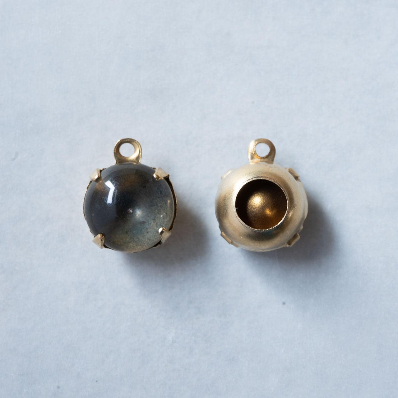 シックなブルーとアンバーのバイカラーの小ぶりなストーンのチャームです。きらきらとは違った大人な雰囲気がカッコよく品があります。パールなどとの組み合わせも面白そうです。