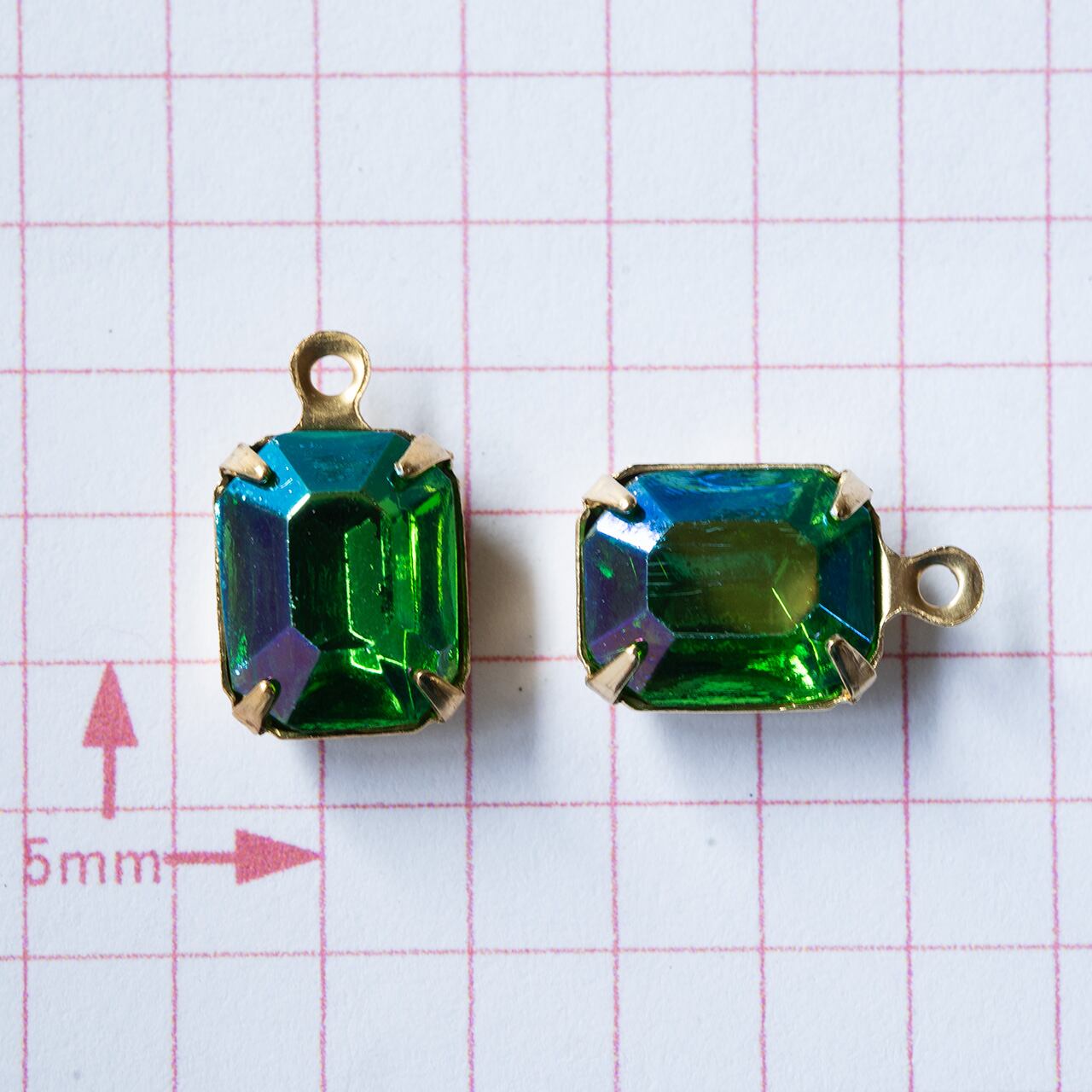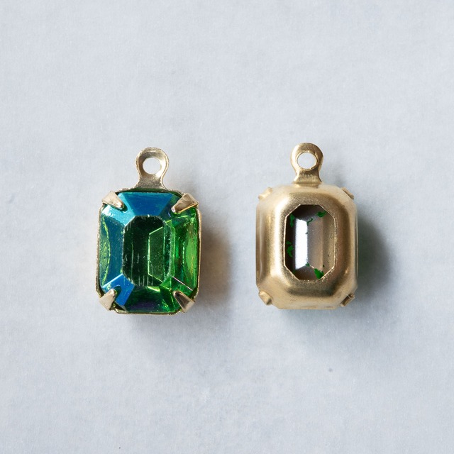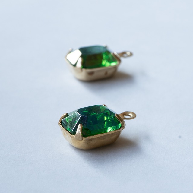 1940's ドイツ グリーンのAB加工オクタゴンチャーム(2コ)