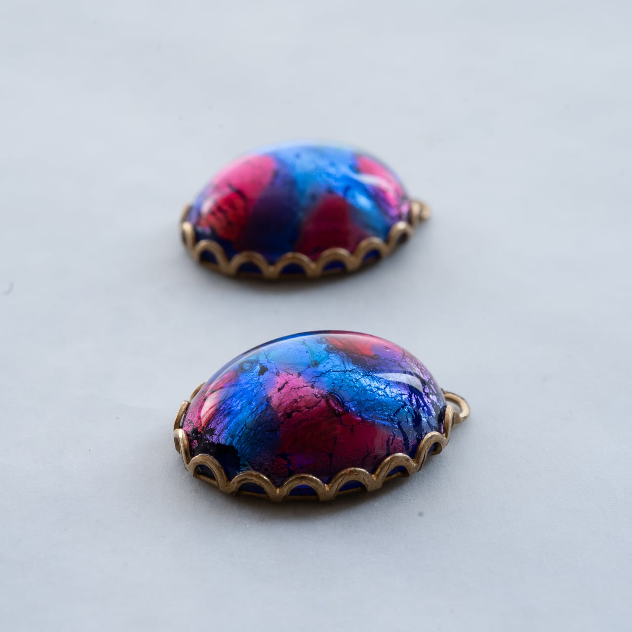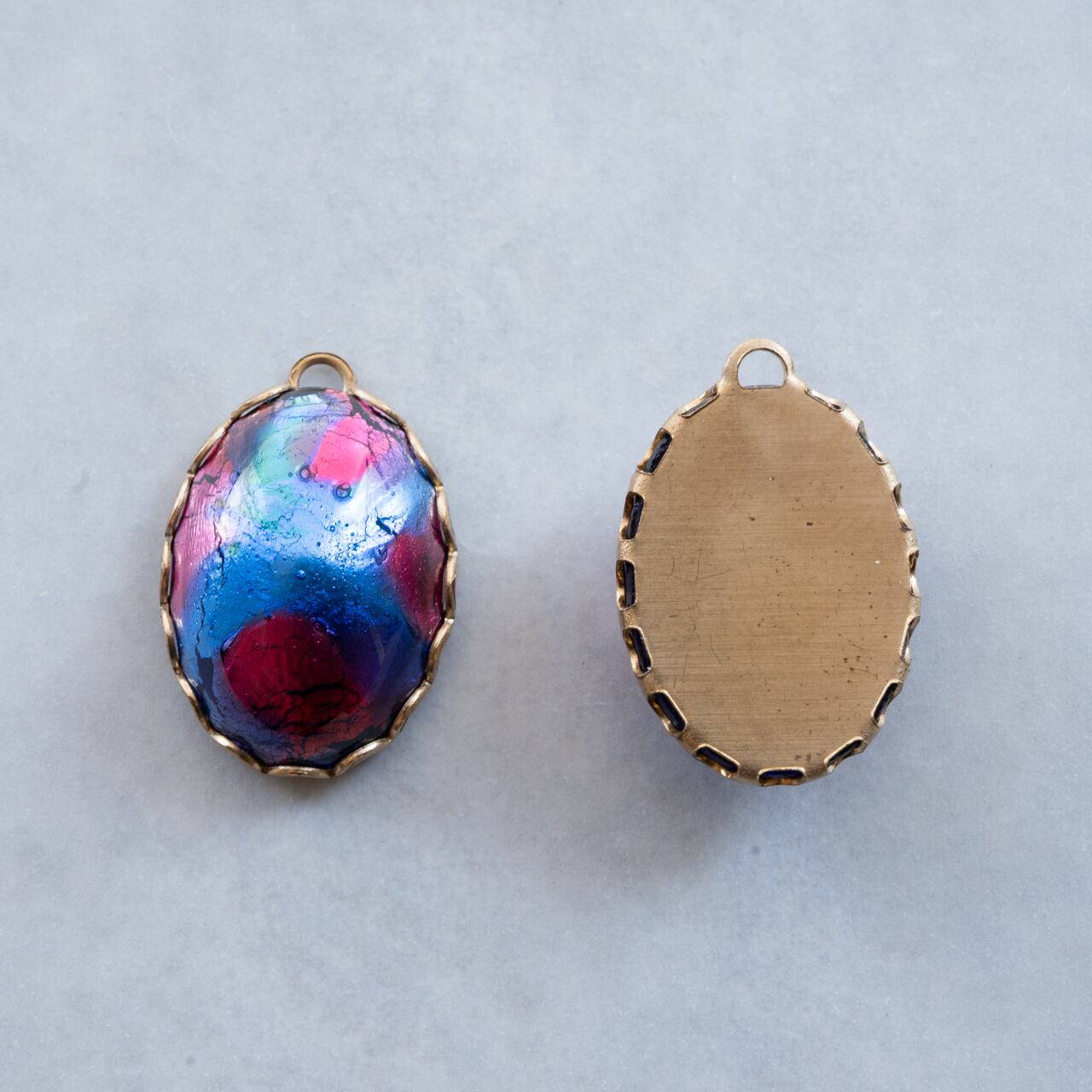 チェコスロバキア ヴィンテージ オーロラのカボション(ブルー×グリーン・1コ)
