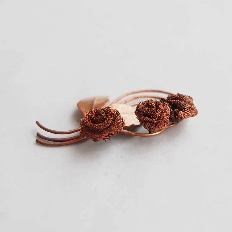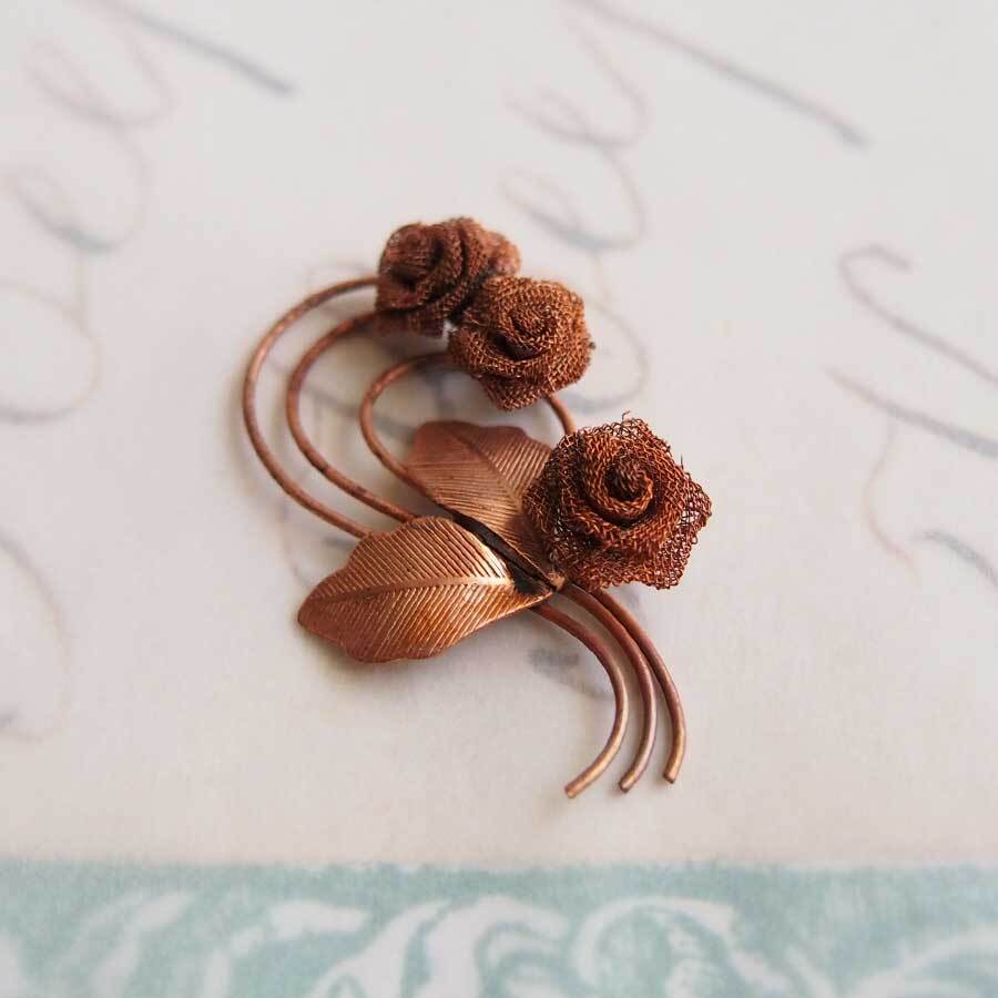 何にしましょう。ハットピン?ブローチ?渋い素材と優雅なバラのギャップなのかバランスなのかとてもいいです。形は3種類あります。仕立てに少し工夫が必要かもしれませんが、ワイヤーなどを上手く使ってできれば素敵な作品ができること間違いなしです。