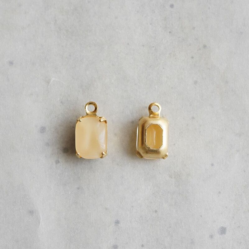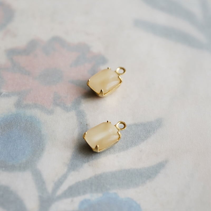 ムーンストーンのような艶があるアイボリーオクタゴンチャームです。小粒で使いやすく、ありそうでなかったというのはこういうのかなと思わせてくれる色使いです。普段使いにさっと使えるし、パールとか、カラフルなチャームとの組合せもすっとこなれた感じになりそうです。