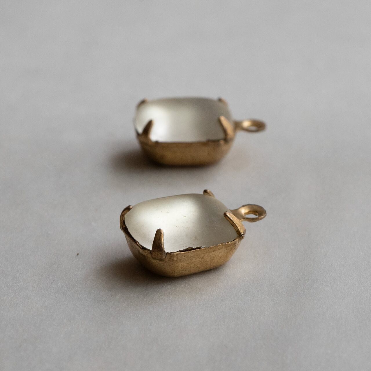 1950's 西ドイツ フロストガラスのオクタゴンストーンチャーム(ホワイト・2コ)