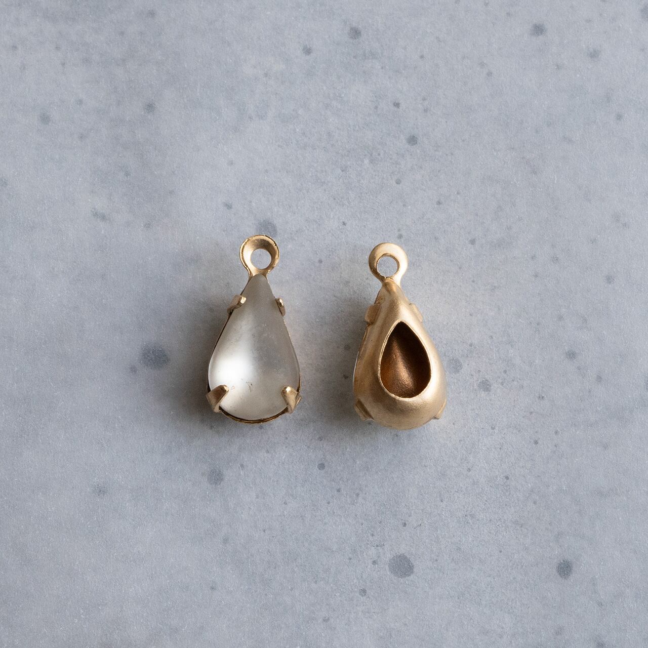 1950's 西ドイツ フロストガラスのペアストーンチャーム(ホワイト・2コ)