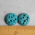 1960's 西ドイツ 草花のレリーフカボション(ターコイズブルー・1コ)